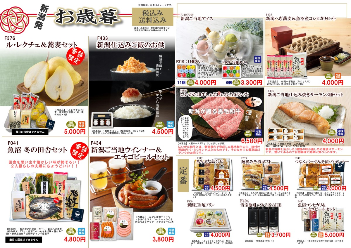 19Nov2025 2025年 新潟のお歳暮ギフト 新潟グルメの御歳暮の紹介です。 ぜひ新潟の「美味しい」を自慢してください。 https://www.uonuma-koshiki.com/ おばあちゃんの魚沼産みょうが 最近のNEWS一覧NEWS一覧 おばあちゃんの魚沼産みょうが 2025.09.23 新潟日報/ガタ市でも購入できます(夏のお中元) 2025.07.27 新潟のブランドすいか(八色すいか)お中元のおすすめ 2025.07.27 津南鬼もろこし/鬼や福ふく 2025.07.21 新潟ギフトをガタ市でも販売しています 2025.07.14